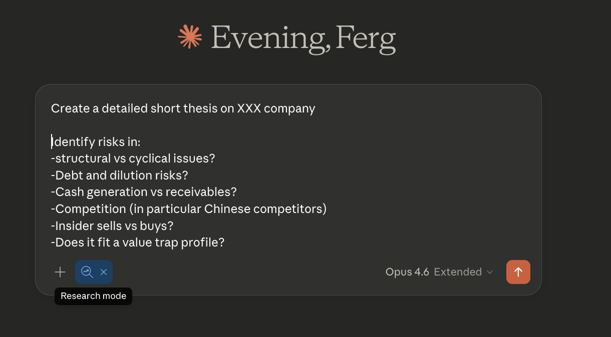 A hack I use constantly is the following when first looking at a company. It’s amazing what it throws out and quite often leads you to a competitor who is better positioned. A good exercise is to run your current portfolio positions through this and see how confident you are being on the other side of the risks it identifies.