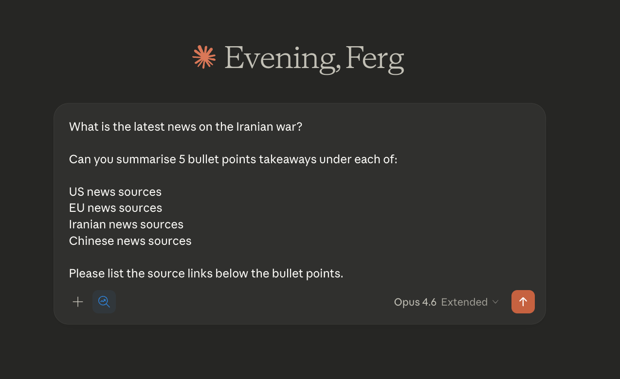 Take the example below, using Claude Opus 4.6 with extended + research mode.