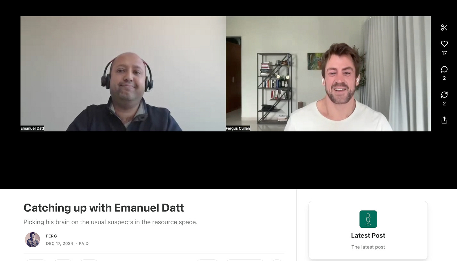 P.S. It was great having Emmanuel Datt back on the show to discuss the usual suspects in coal and tin plus a handful of other resource opportunities he’s seeing.