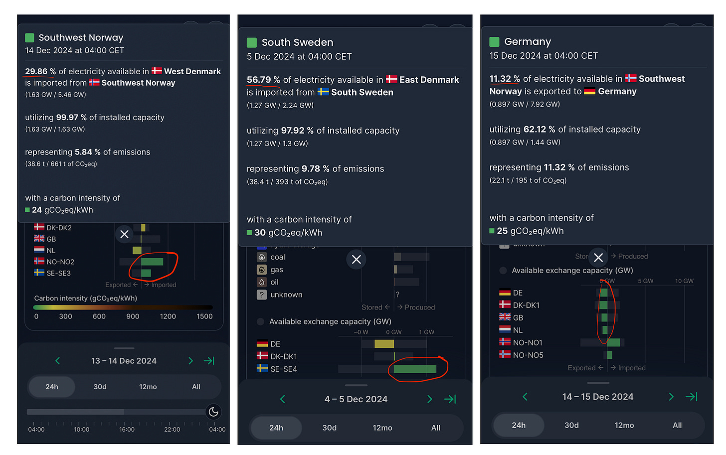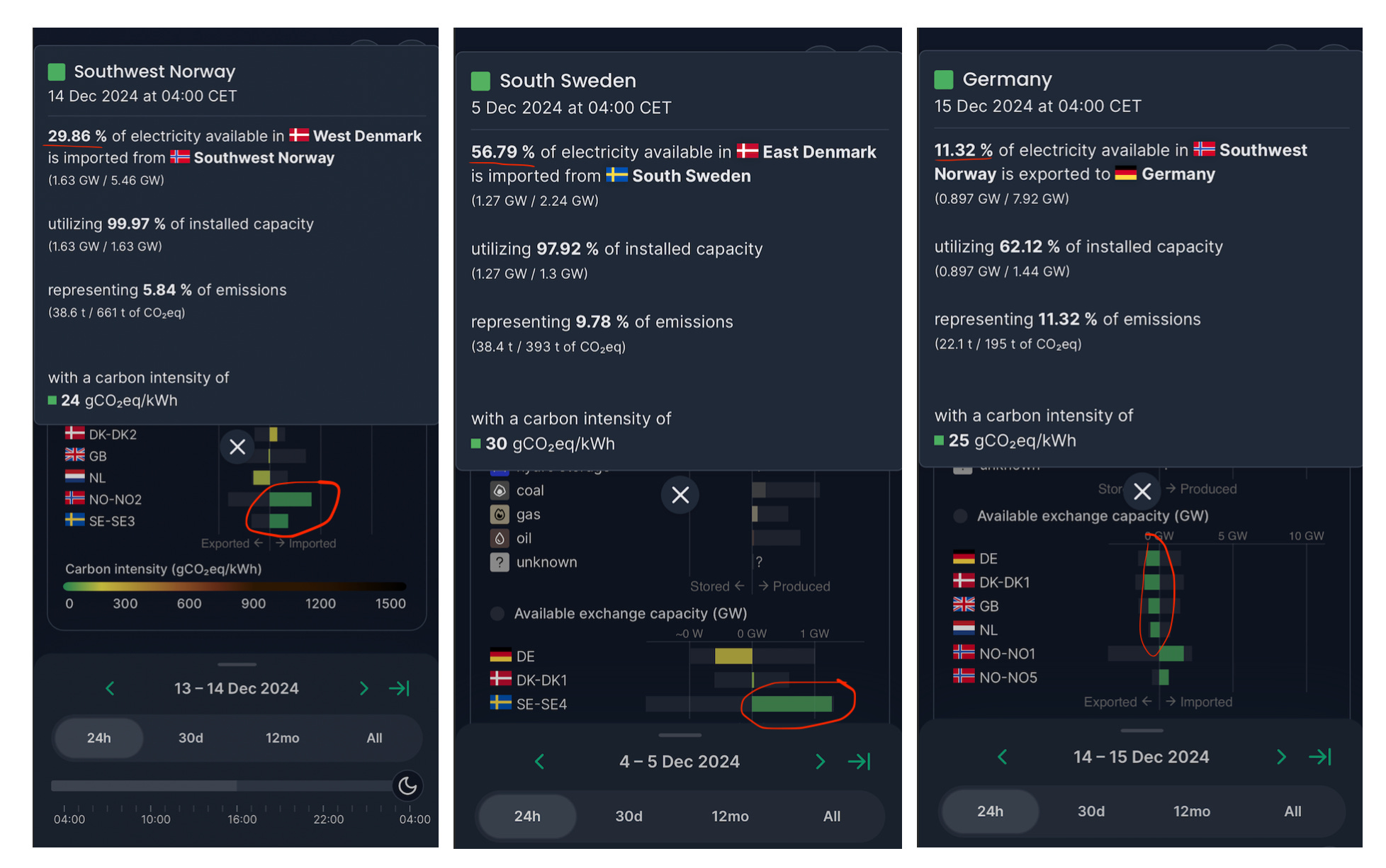 West Denmark 13-14th December: 30% of electricity was imported from Norway (a further 10% from Sweden).