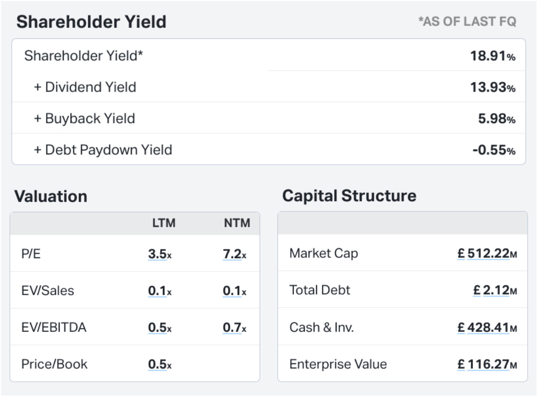 Here are some examples, be it enterprise value, market capitalisation, or straight percentage return. The two below should look familiar, as they are the last two positions I've brought!