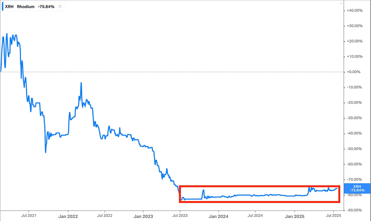This is why I find the PGM space so interesting, as rhodium is in a crazy tight trading range, while platinum has recently broken out of a decade-long trading range.