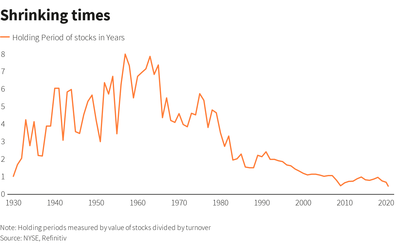 Which is the opposite of what the average investor is doing today with average holding getting as low as five and a half months in 2020.