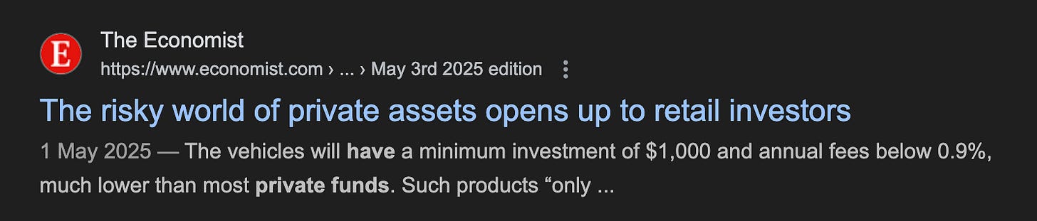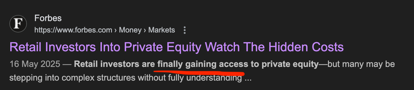 The same is about to happen with retail, "finally gaining access" to private equity.