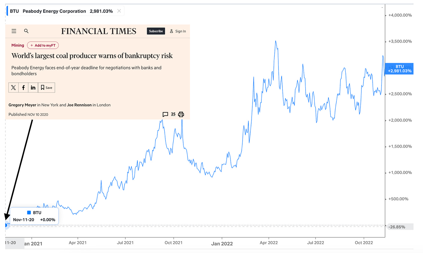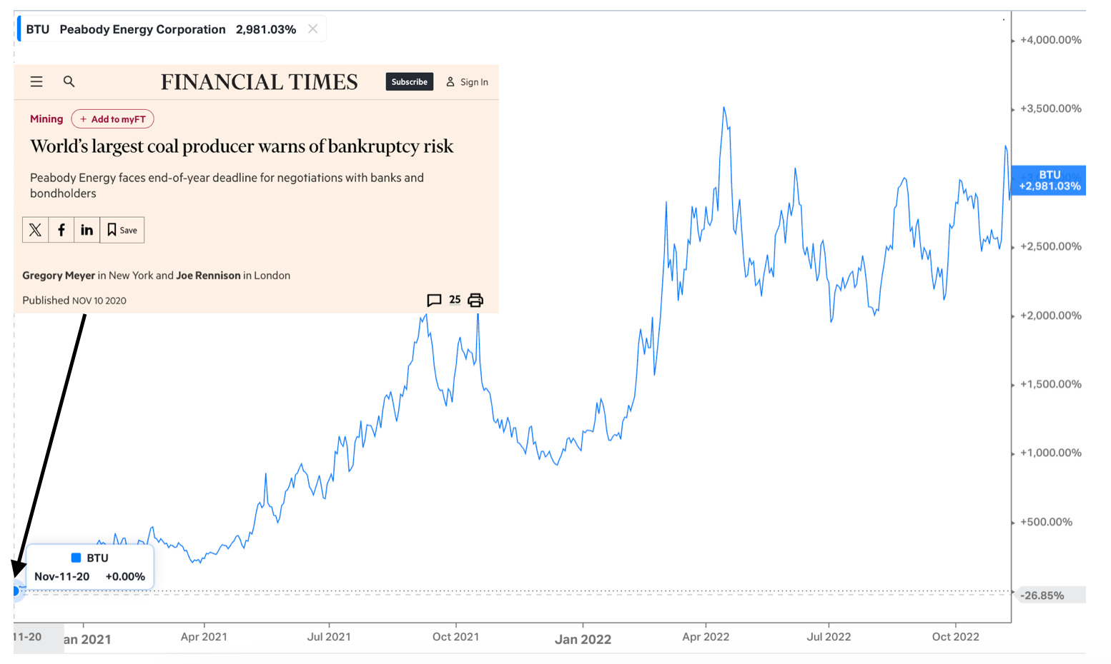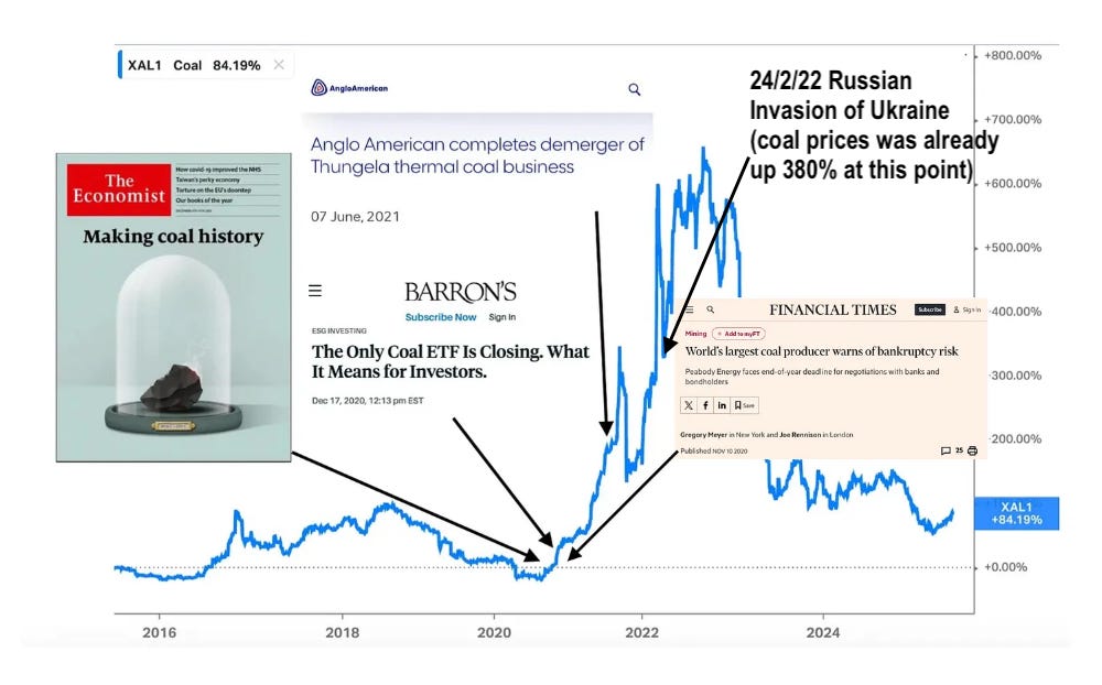 Coal in late 2020 is a good example of what peak pessimism looks like, with back to back contrarian signs: