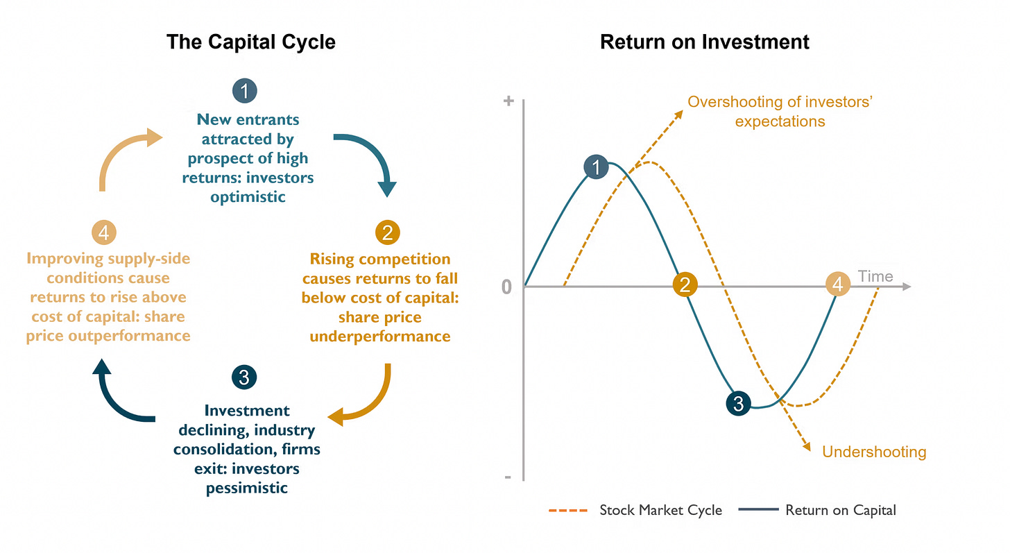 The simpler the sector, the better, as it makes it easier to work out where we are within the particular sector's capital cycle and, obviously, ties into sentiment, which is expectations overtaking or undershooting.