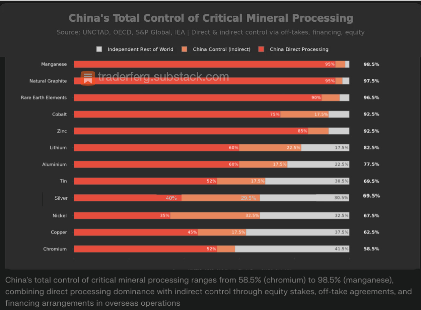 While most are aware that China dominates global refining/processing, the extent of it when you factor in indirect control via financing and off-takes is pretty shocking.