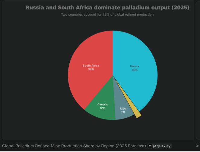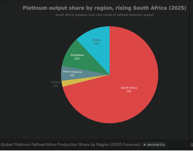 This is where the jigsaw pieces came together for me: South African PGM producers, who represent one of the largest vertically integrated mining and processing operations globally and remain substantially outside Chinese control through ownership, financing, or off-take agreements.