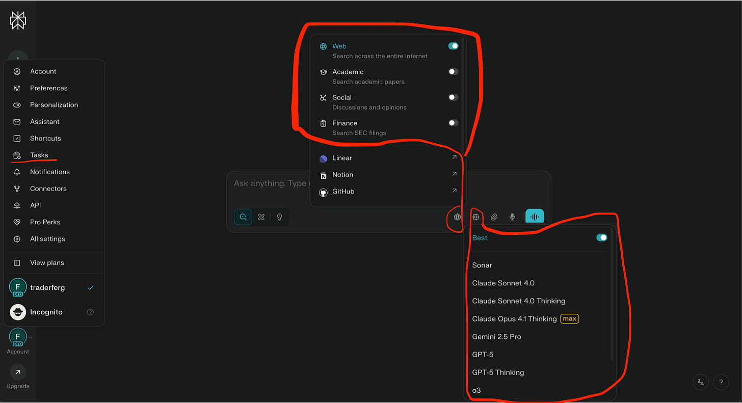 You can select where it searches: Web, Academic, Social and Finance (SEC filings). It significantly reduces “hallucinations” when you can purely select SEC filings, then add Web if necessary. While purely selecting social is great for sentiment-based queries, for example.