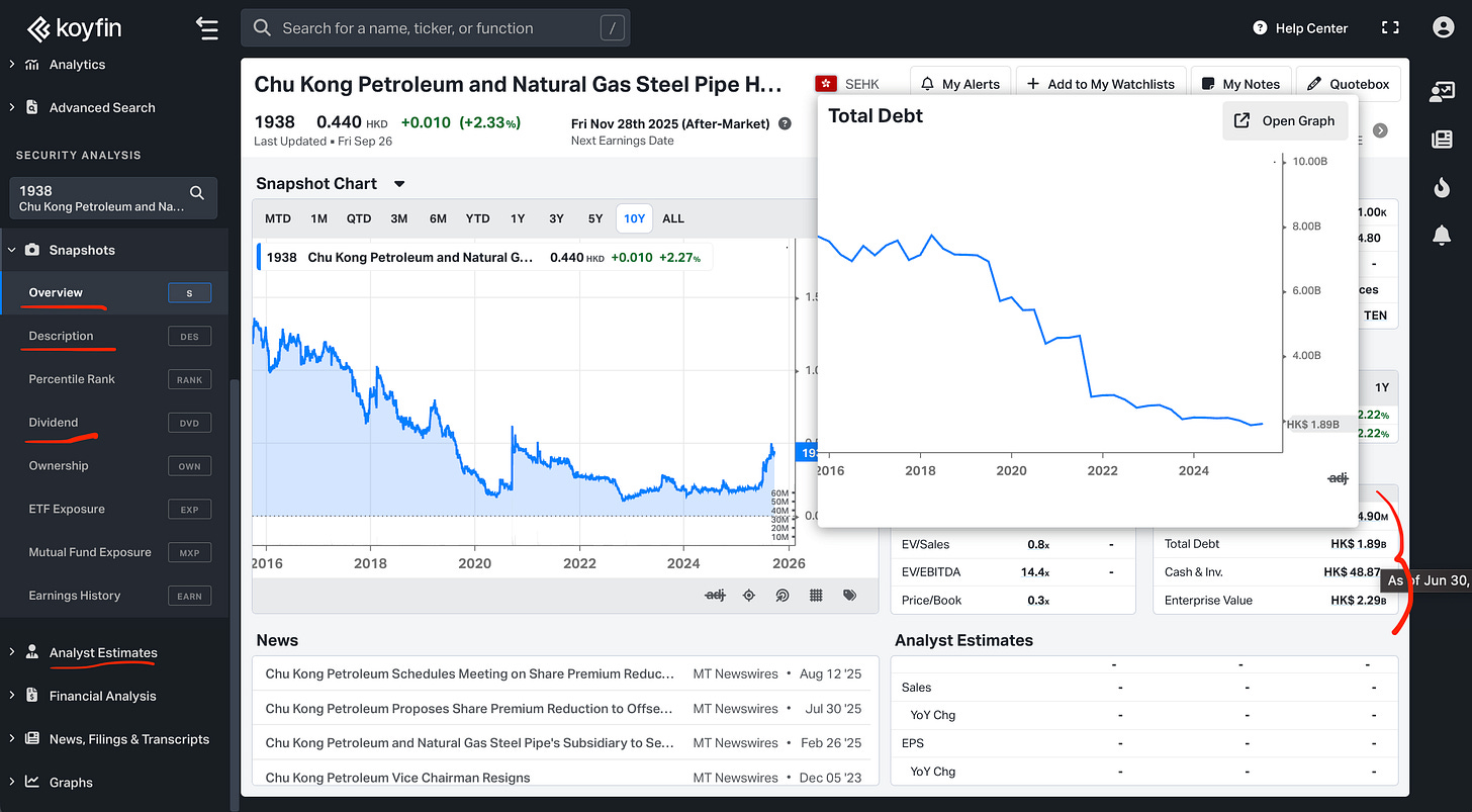 Clicking Snapshot, then Overview, followed by Description and hovering the mouse over metrics such as shares-outstanding, debt, cash, enterprise value, and sales gives you a quick overview of how the metrics are trending over the last 10 years. The dividend tab is great for a quick look at shareholder yield. Lastly, I use Analyst estimates (then estimate trends) as a sentiment reading in terms of whether there are even analysts following the company, and if there are, how bullish are they on earnings growth (something I touched on in my recent Ferg’s Finds).